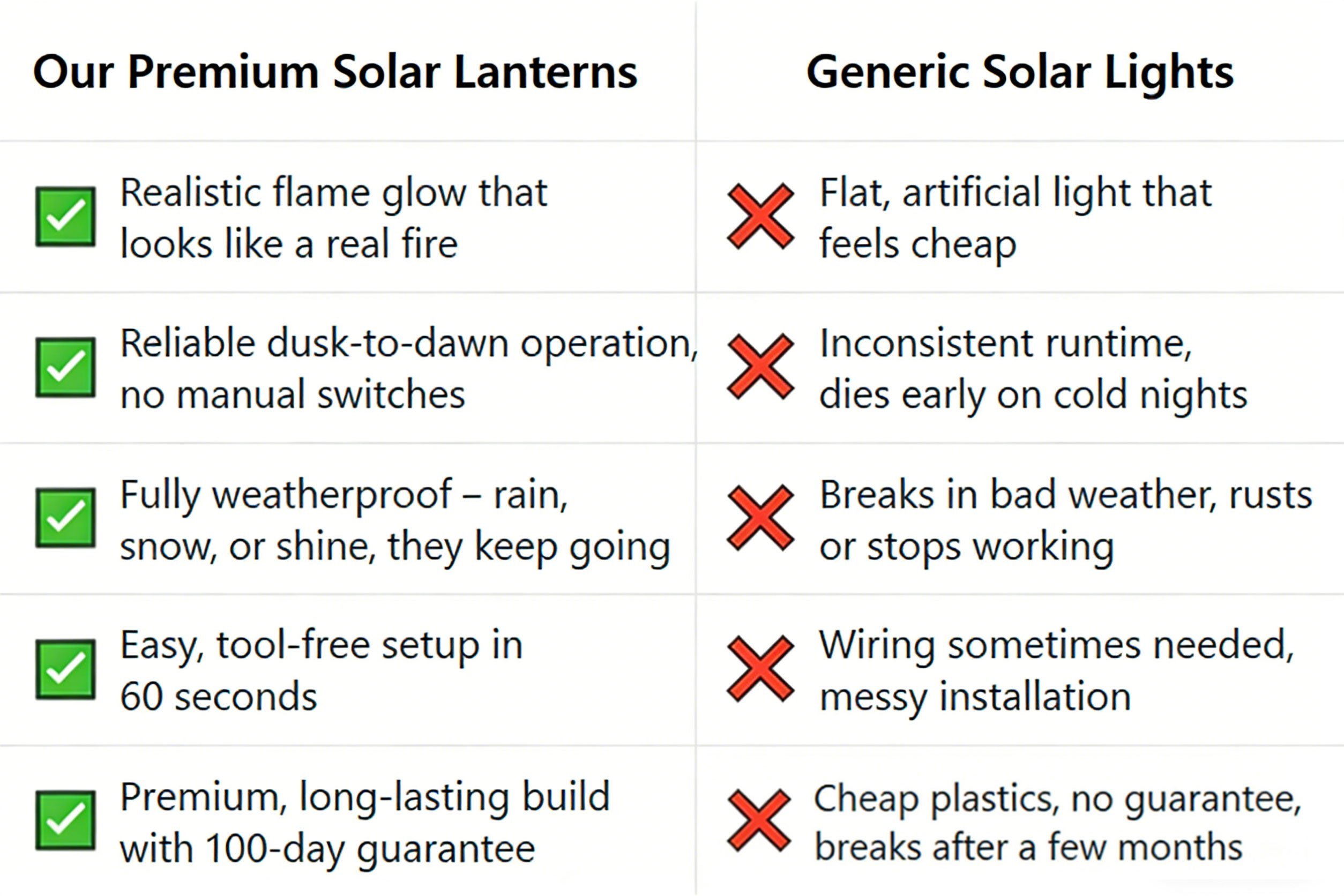 Most solar lights barely glow. Ours create warmth, depth, and atmosphere.