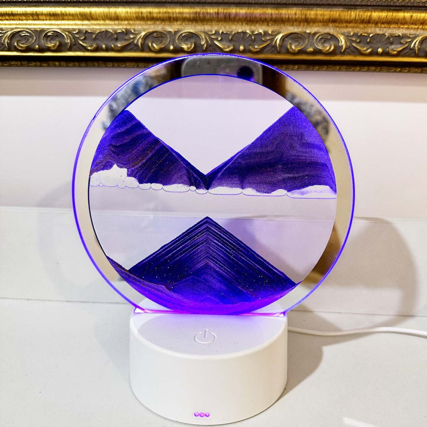 3D Moving Sand Art LED Table Lamp Sandscape Night Light Purple