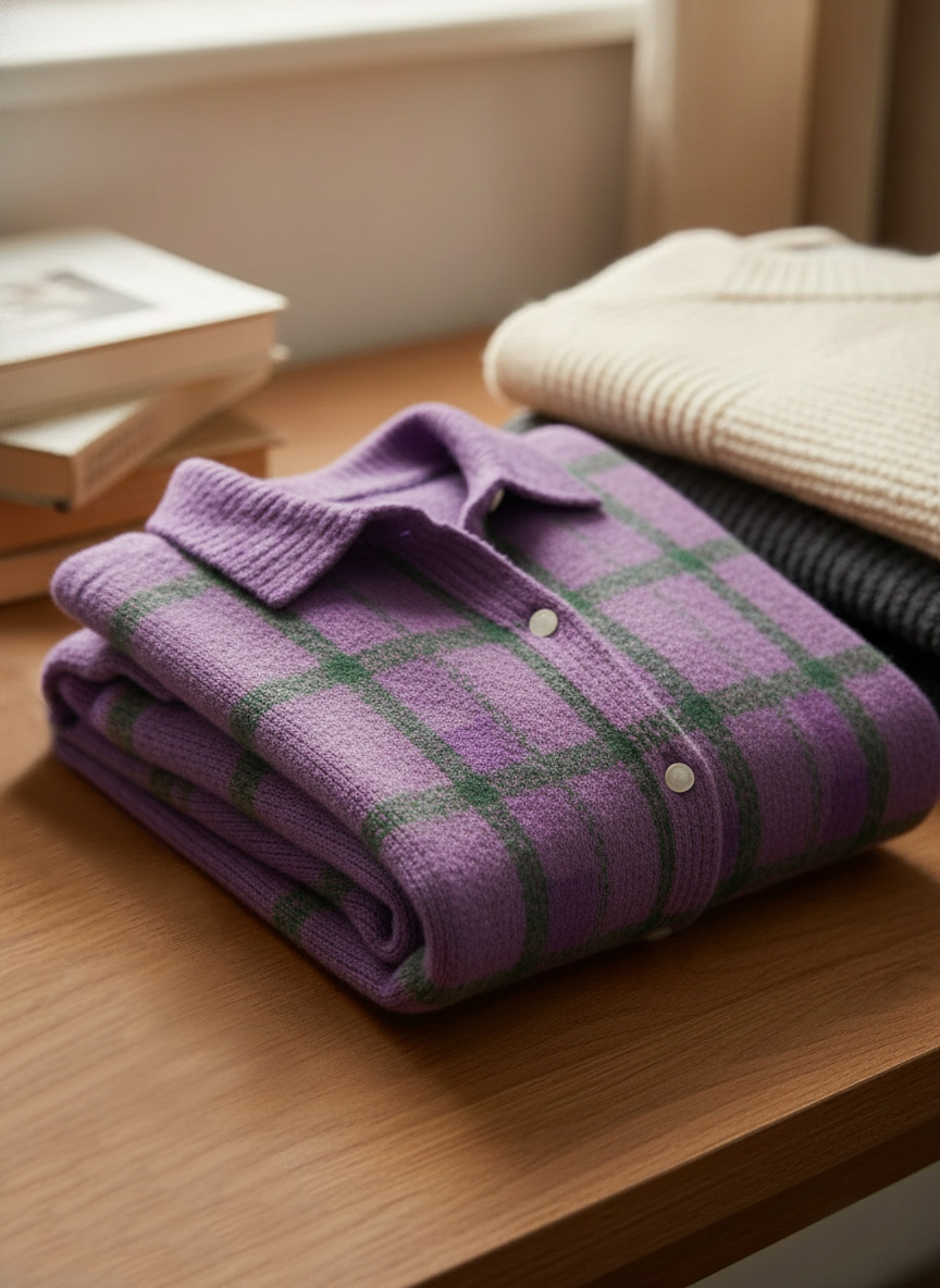 CLEARANCE SALE🔥 Women's Casual Contrast Color Autumn and Winter Retro Plaid Print Buttoned Cardigan Sweater