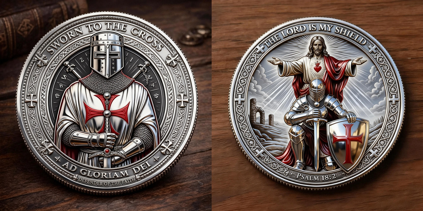 🪙 Obverse (Front) – “Sworn to the Cross” ⚔️✝️
