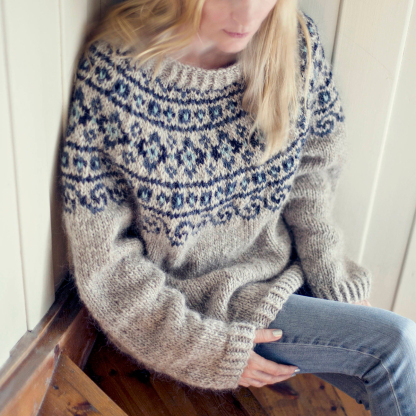 Vintage Beautiful Norwegian Knit Jacquard Crew Neck Sweater(Unisex)